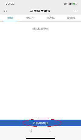 2、点击“居民参保登记”进入界面后点击下方的“新增申报”。