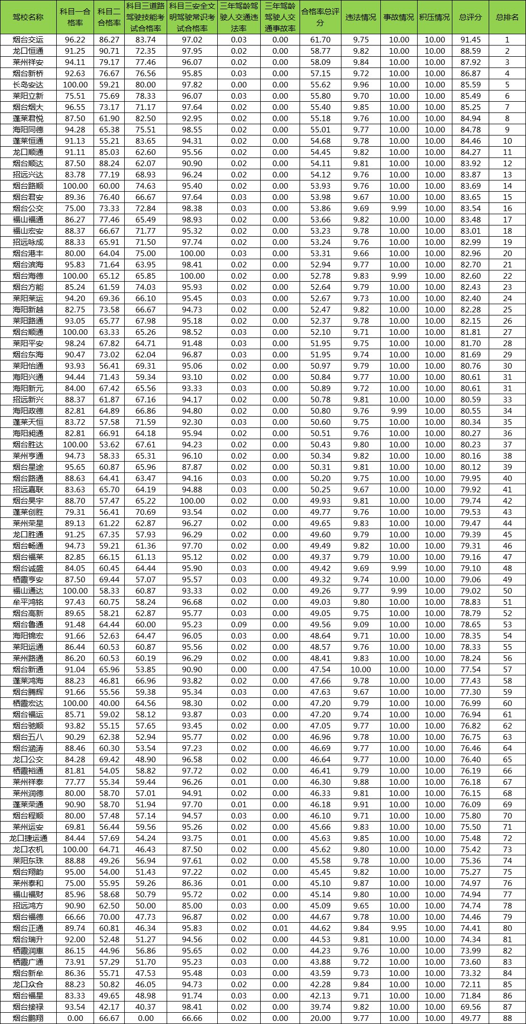 烟台最新驾校培训质量排名表(烟台最新驾校培训质量排名表图片)