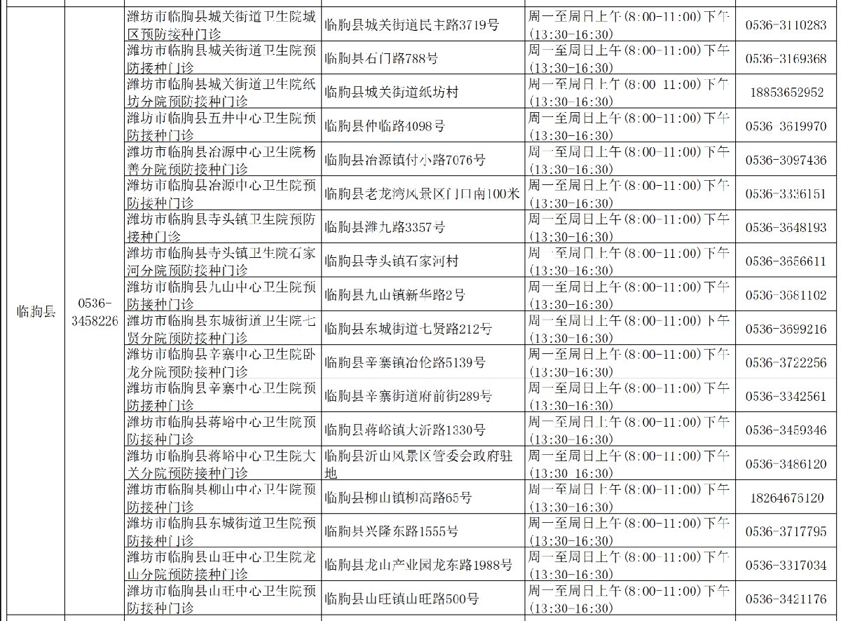 临朐县3-11岁儿童新冠疫苗接种点及预约电话