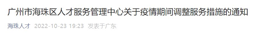 为配合本区域疫情防控工作,在此期间进入海珠区人才服务管理中心实行测温、扫场所码及查验48小时内核酸检测阴性证明。