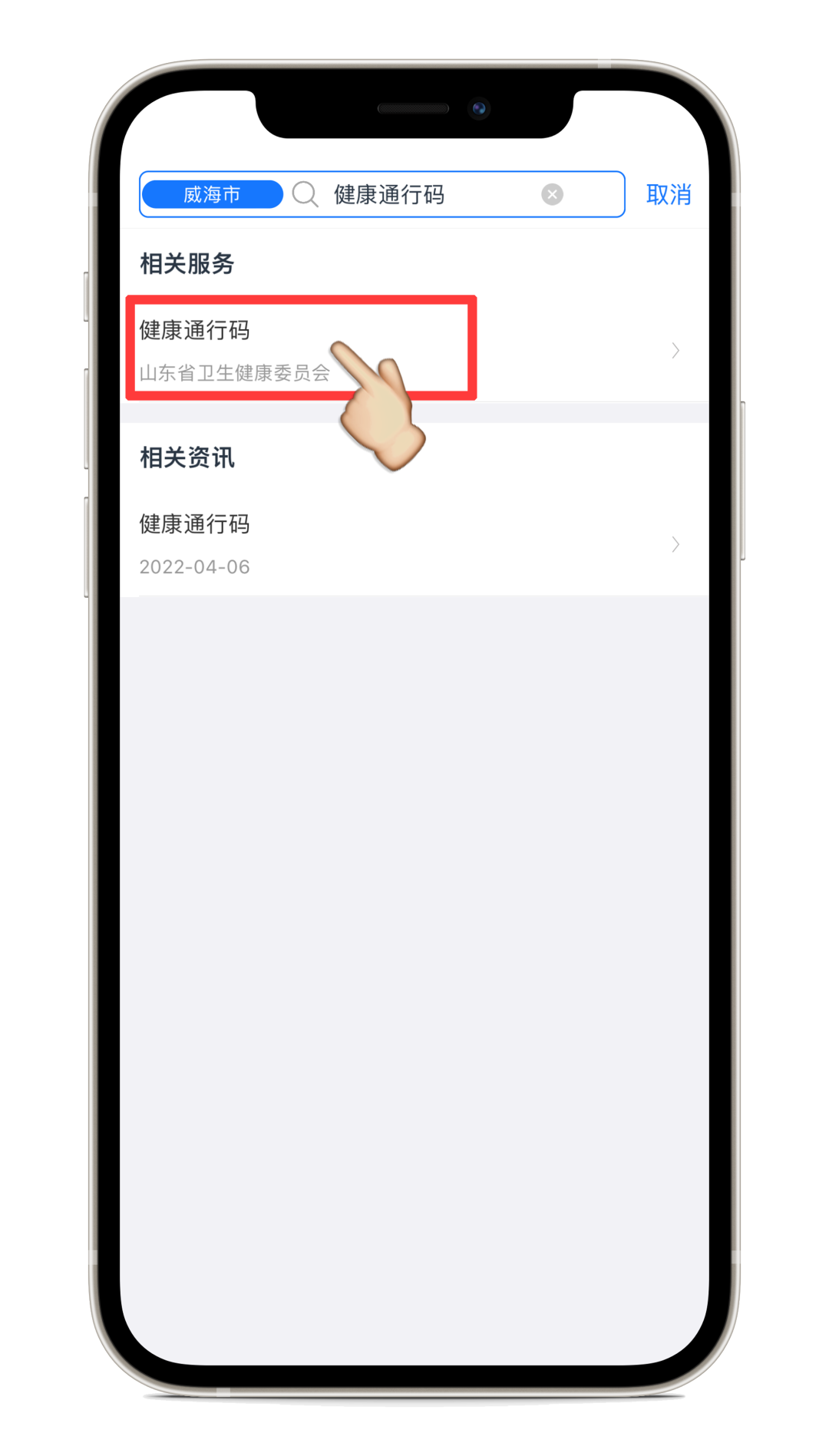 1、打开“爱山东”APP,在首页搜索“健康通行码”,点击进入该服务。