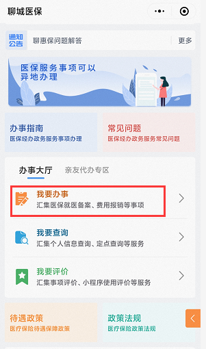 1、微信搜索“聊城医保”小程序,点击“我要办事”