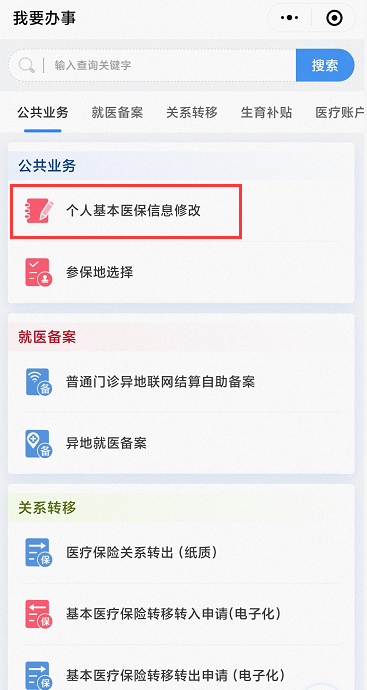 2、选择“个人基本医保信息修改”