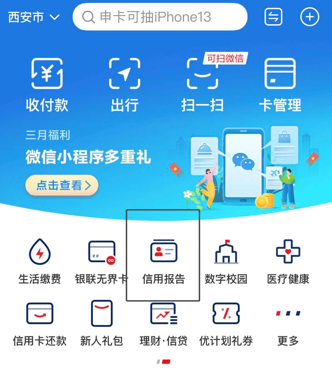 以中国银行为例:打开或下载中国银行app,搜索【征信】