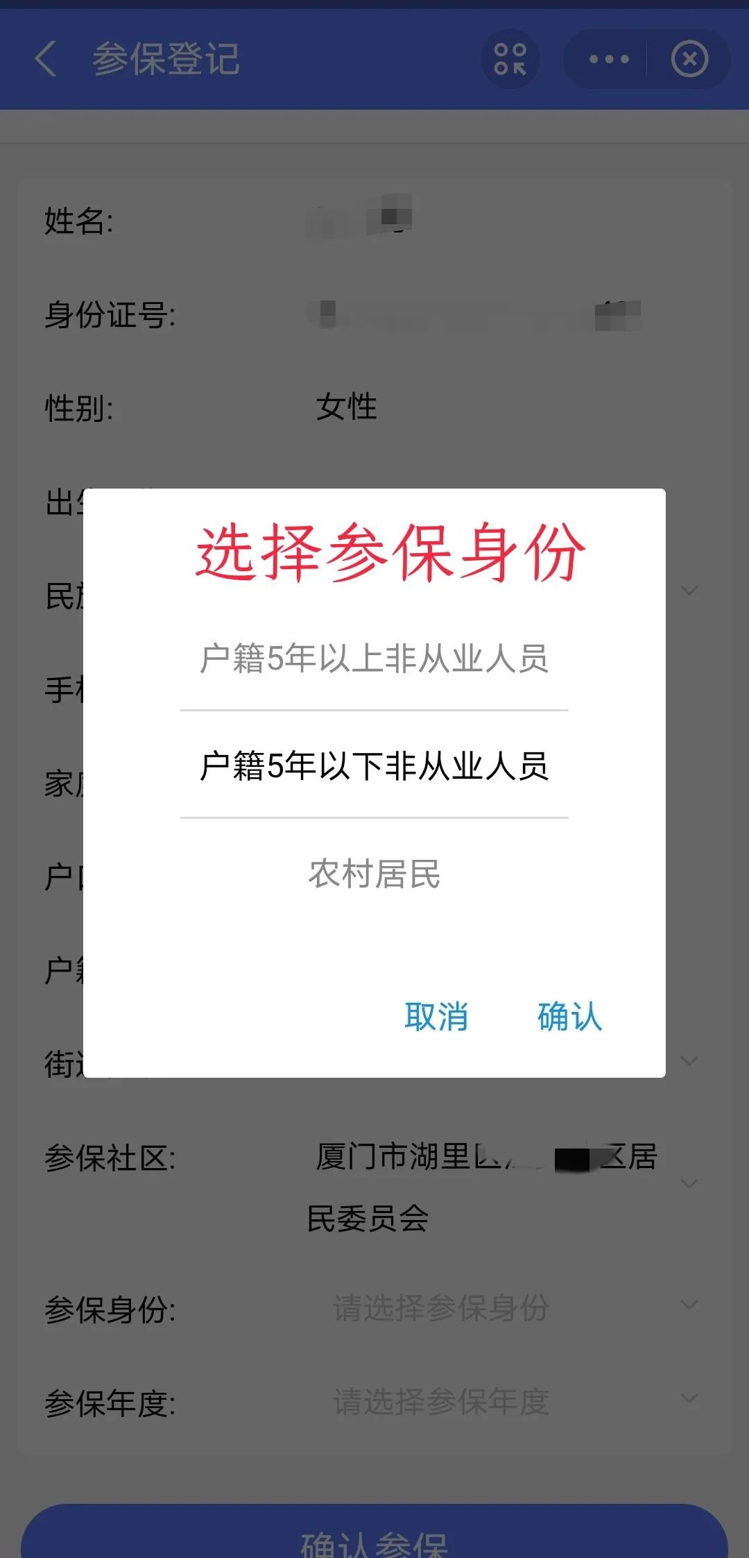 厦门城乡居民医保参保登记步骤(线上一次办)