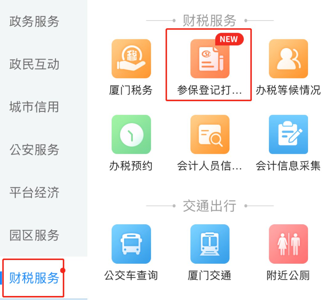 01:打开“i厦门”APP,点击【服务】-【财税服务】找到【参保登记打包办】。>>>点此下载“i厦门”APP