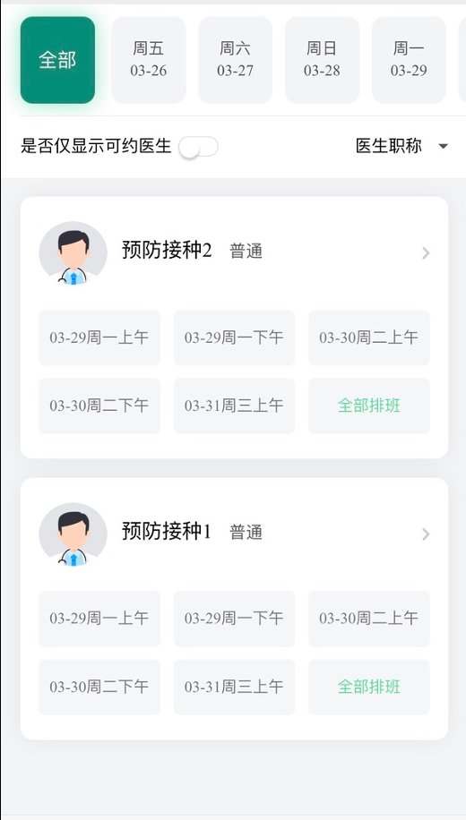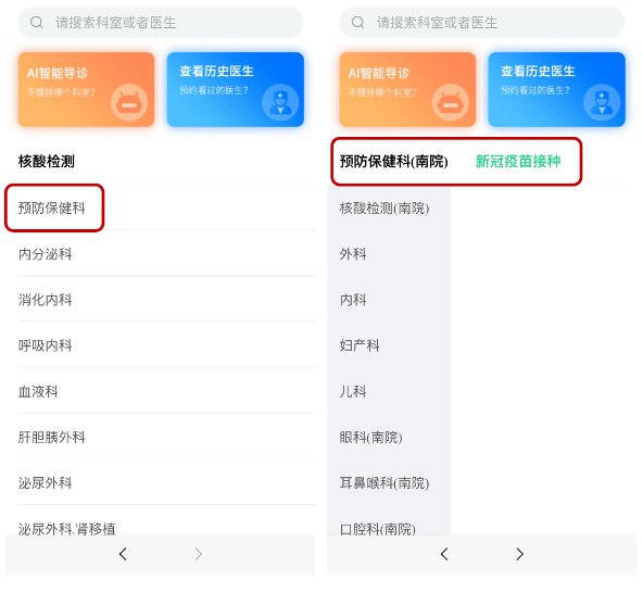 3、选择科室:预防保健科(左图为福建省立医院界面,右图为福建省立金山医院界面)