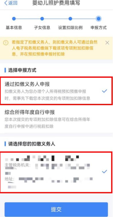 问:2022内江婴幼儿照护专项附加扣除申报方式如何选择?