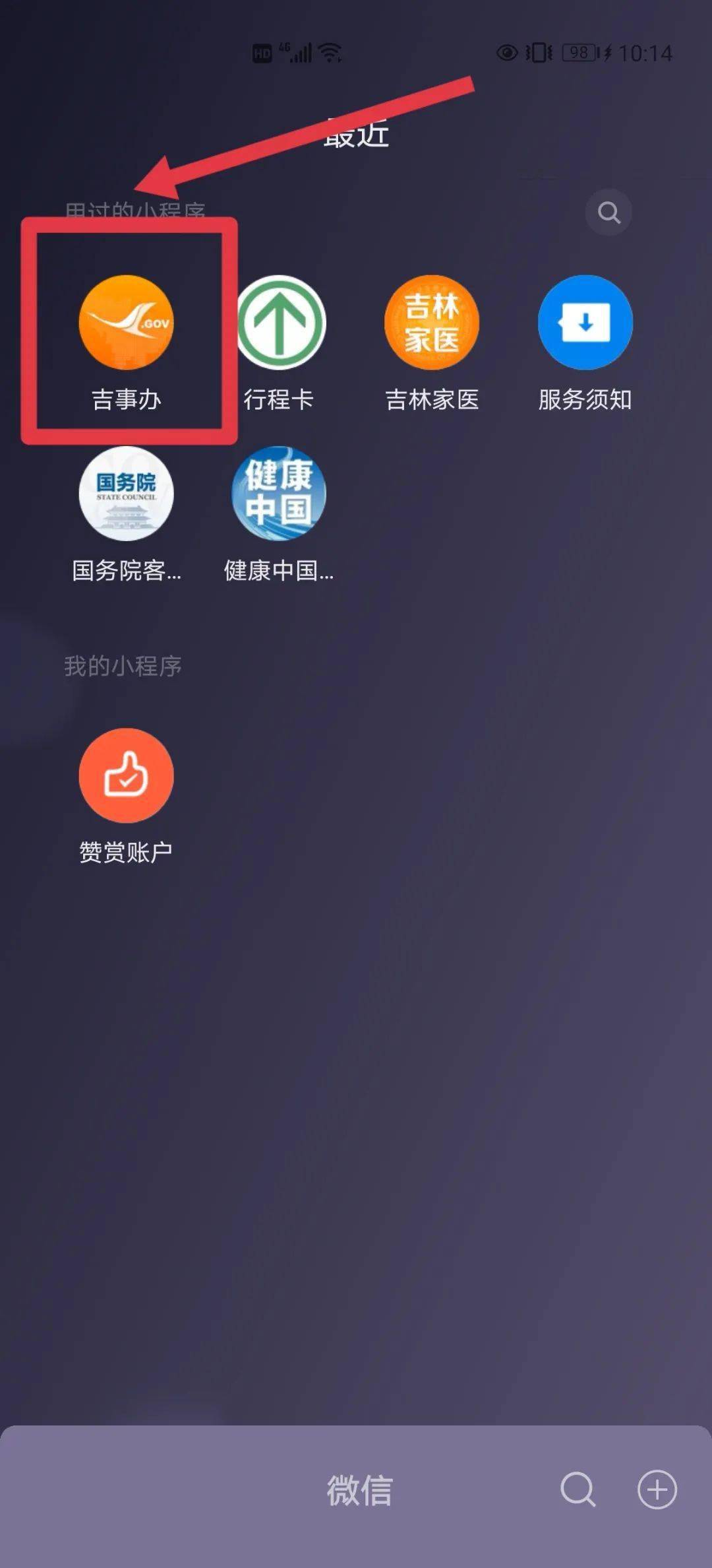 第一步:打开微信吉事办小程序