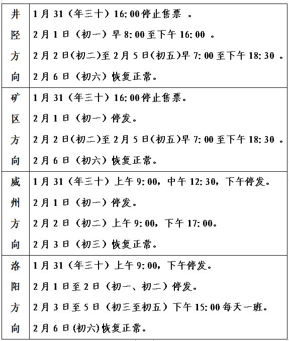 2022年西王客运站春节车辆安排表