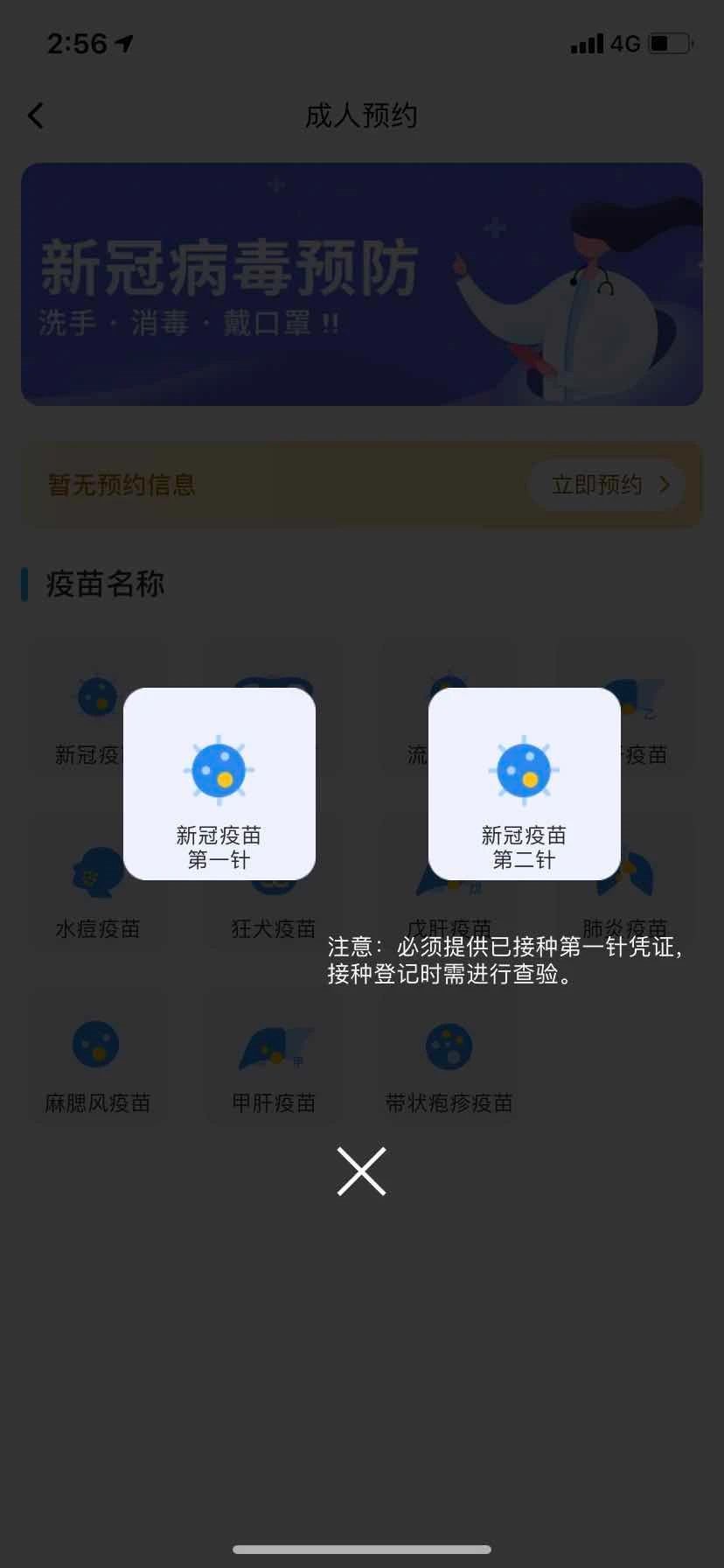 第二步:选择:选择新冠疫苗预约