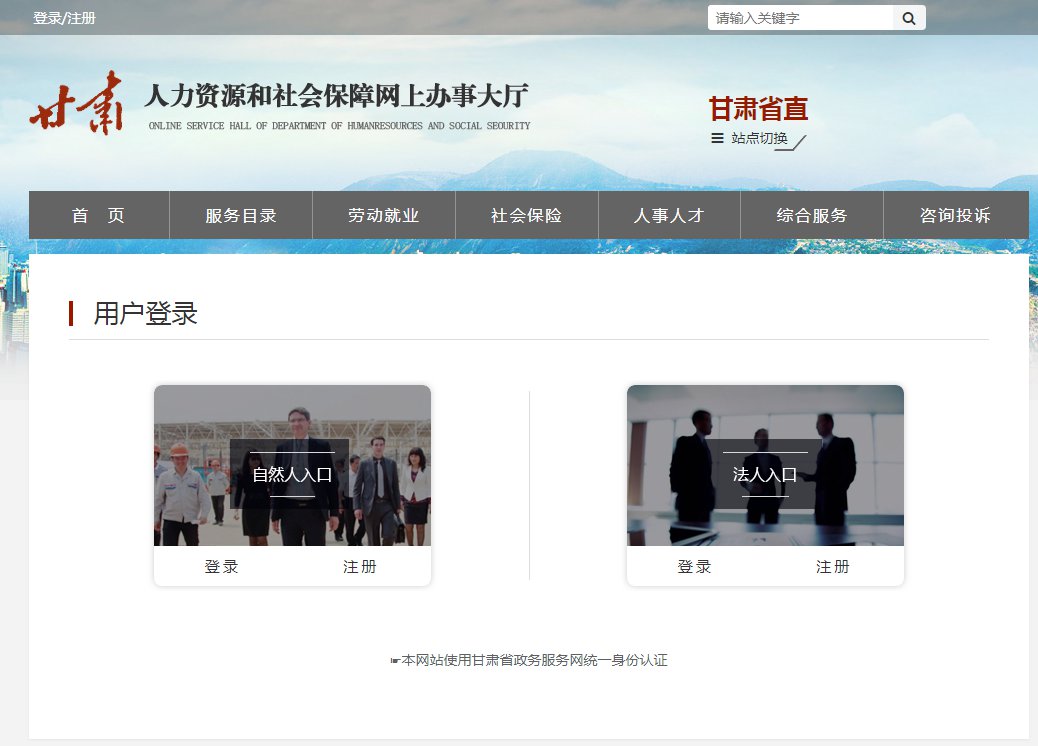 打开浏览器,进入甘肃人力资源和社会保障网上办事大厅首页,点击右上角【注册】并填写相关注册信息。
