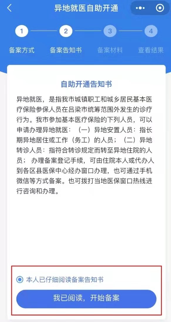 仔细阅读备案告知书,选中【本人已仔细阅读备案告知书】后,点击【我已阅读,开始备案】按钮。