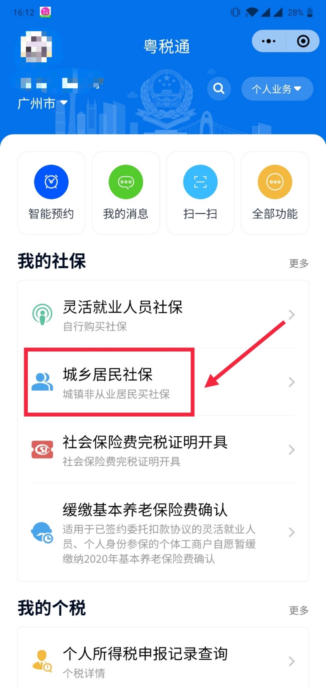 第四步:选择“城乡居民社保缴费”,如下图所示;(点击图片可放大)