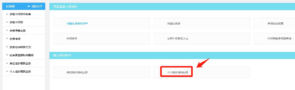 第三步:在“城乡居民业务”中找到“个人城乡居民业务”,如下图所示;(点击图片可放大)