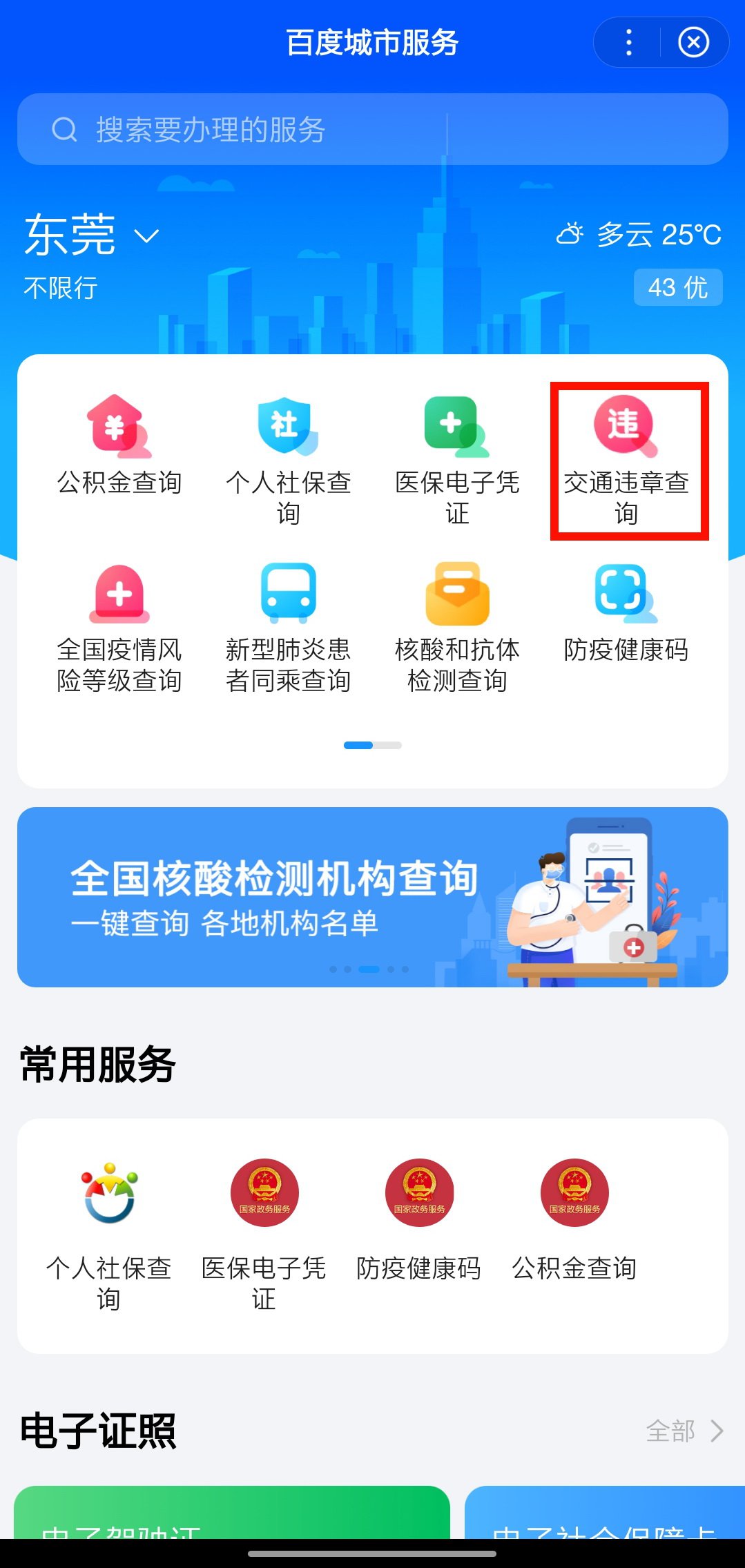 第一步:打开百度APP,搜索『百度城市服务』小程序,点击进入小程序页面