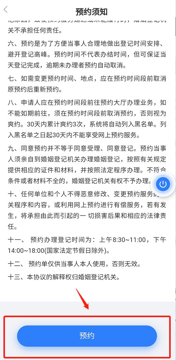 4、仔细阅读预约须知,了解相关事宜后点击【预约】。