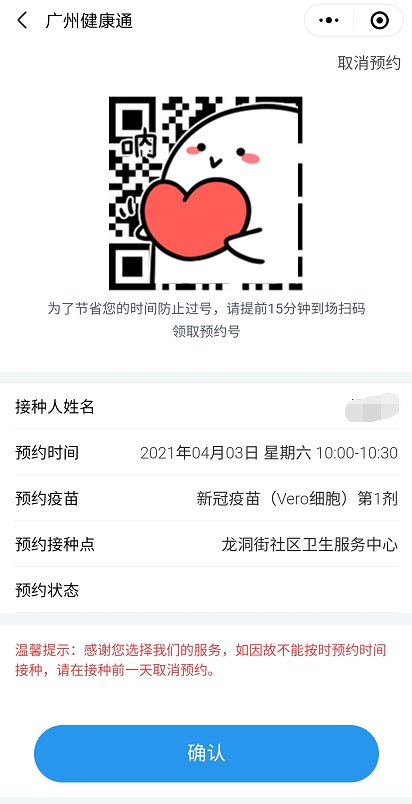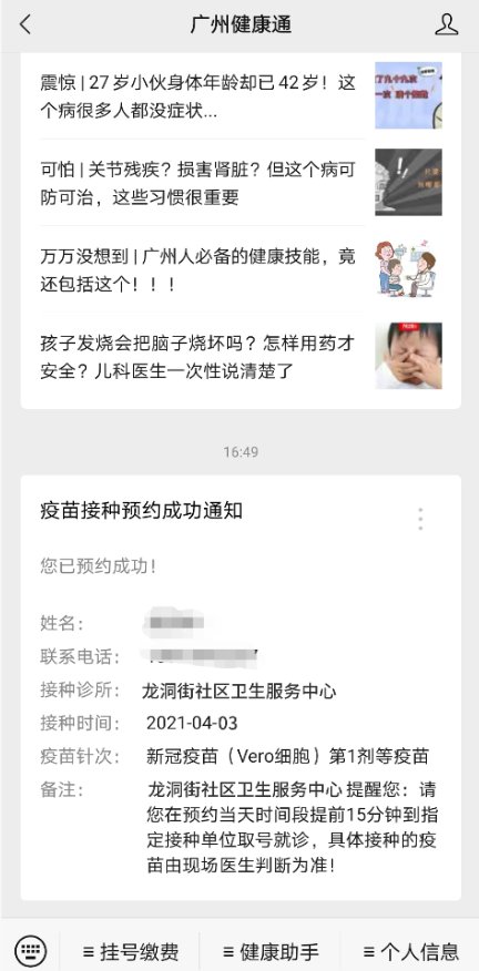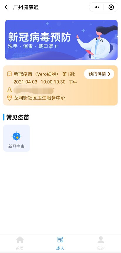 6月6日下午,广州重启新冠疫苗第二针预约接种,预约平台为广州健康通小程序。预约步骤如下:
