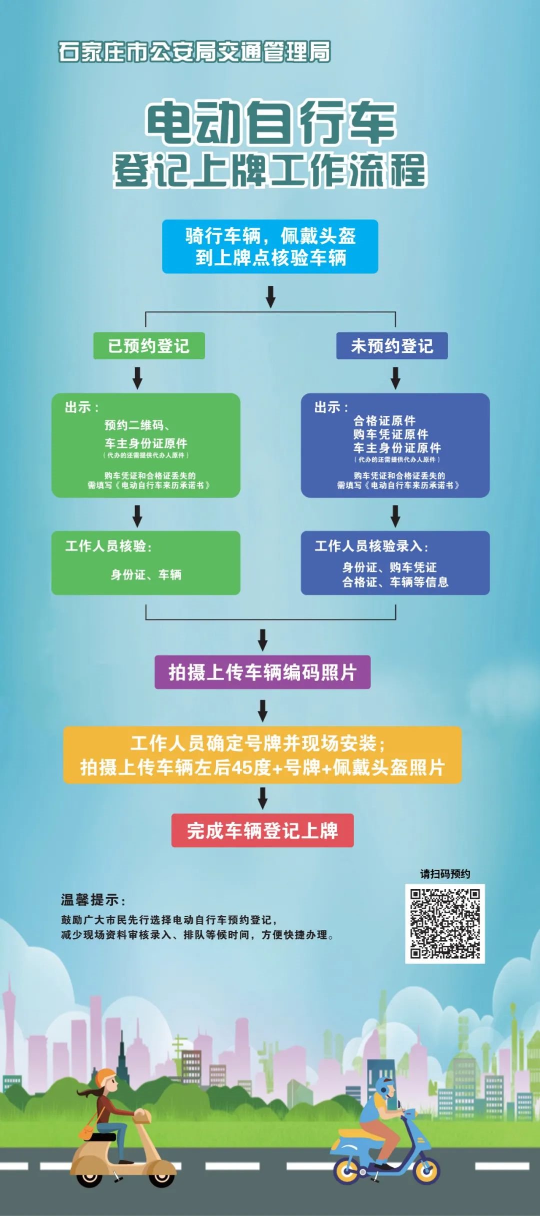 申请登记上牌时,申请人需携带身份证原件、骑行车辆、佩戴头盔,现场交验车辆。