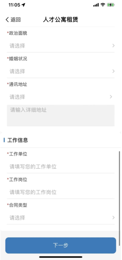 4、填写相关申请信息,点击【下一步】;