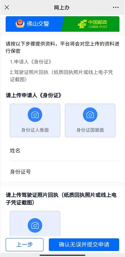 办前须知:“佛山警邮合作服务号”网上办理仅限于佛山市核发的驾驶证办理期满换证;如果是非佛山市核发的驾驶证需要在佛山市内办理换证业务,可以在交管12123手机APP网上申请。