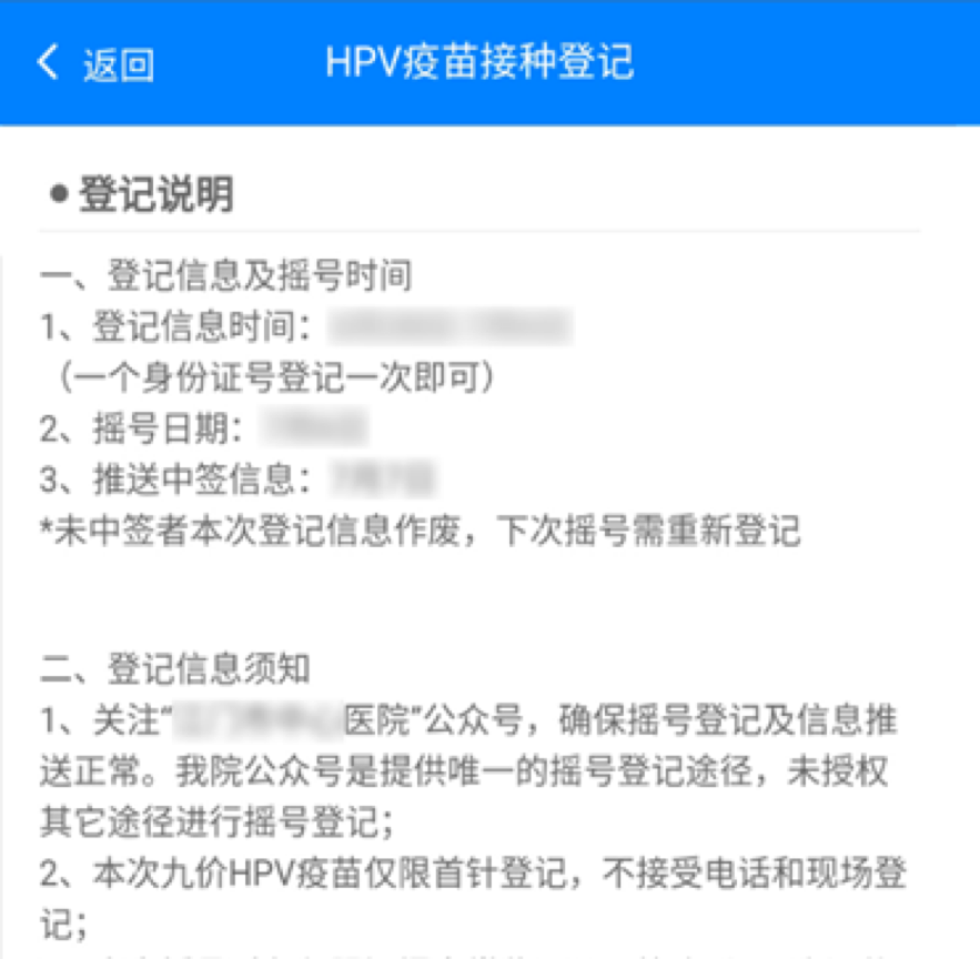 2、本次九价HPV疫苗仅限首针登记(二、三针视为无效登记),不接受电话和现场登记;全程三针需一次性缴费;