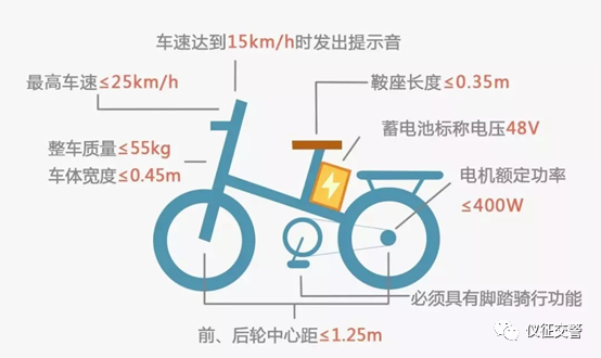 《电动自行车安全技术规范》:电动自行车需具备脚踏骑行能力,整车质量禁超55kg,最高时速不超过25km/h。此外,电动车新国标还对电动功率、蓄电池电压、防篡改、防火阻燃性能、充电器保护等方面做出了具体技术要求。