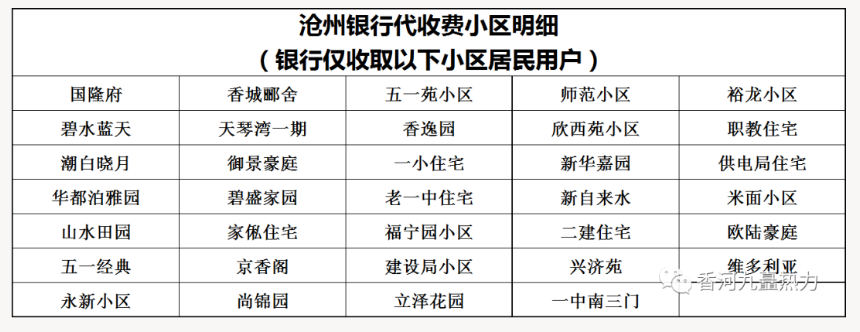 ★沧州银行优惠活动仅限沧州银行代收费小区内居民用户参加(小区明细见下表)。