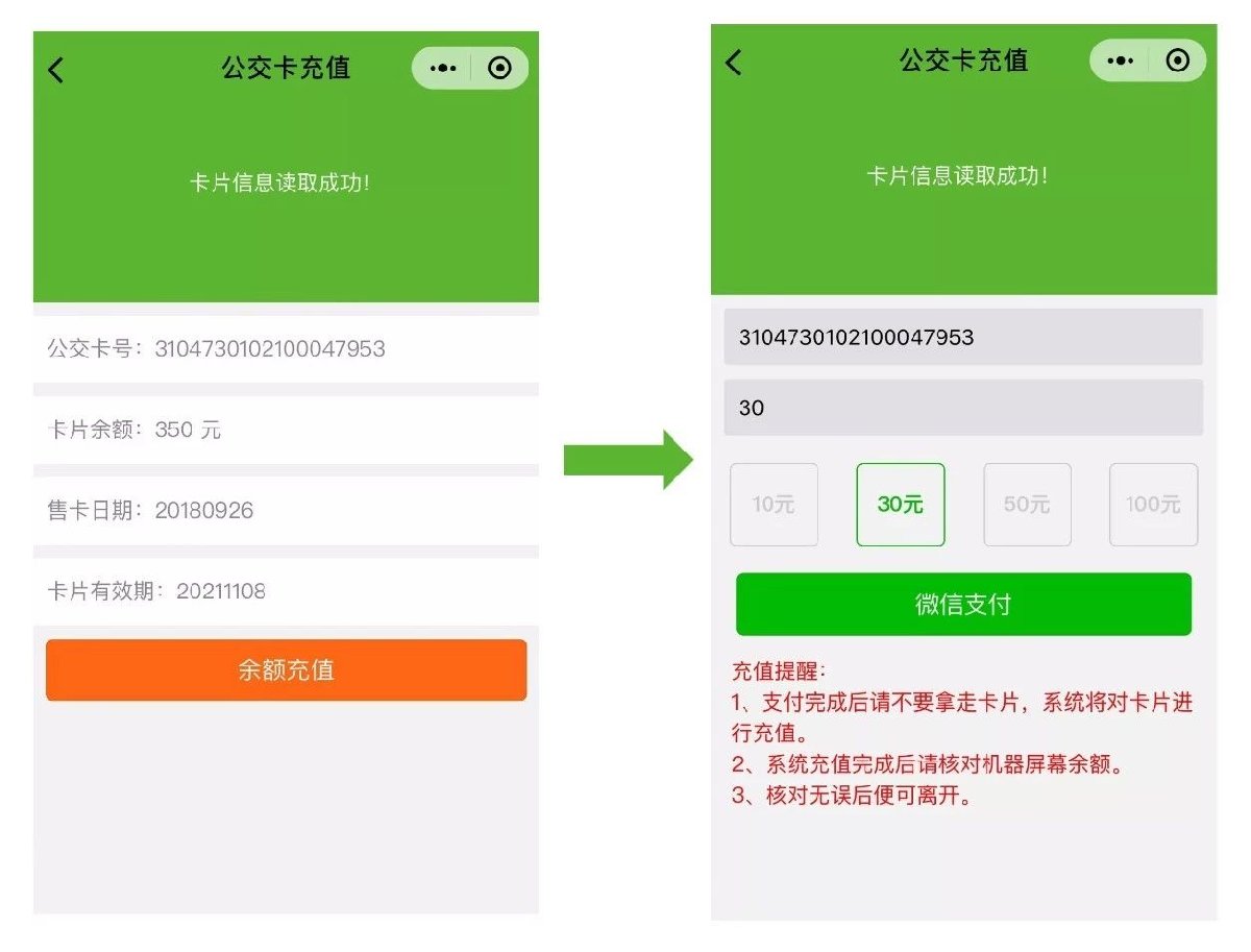 5、卡片信息读取成功后,点击“余额充值”后,选择相应金额支付即可。