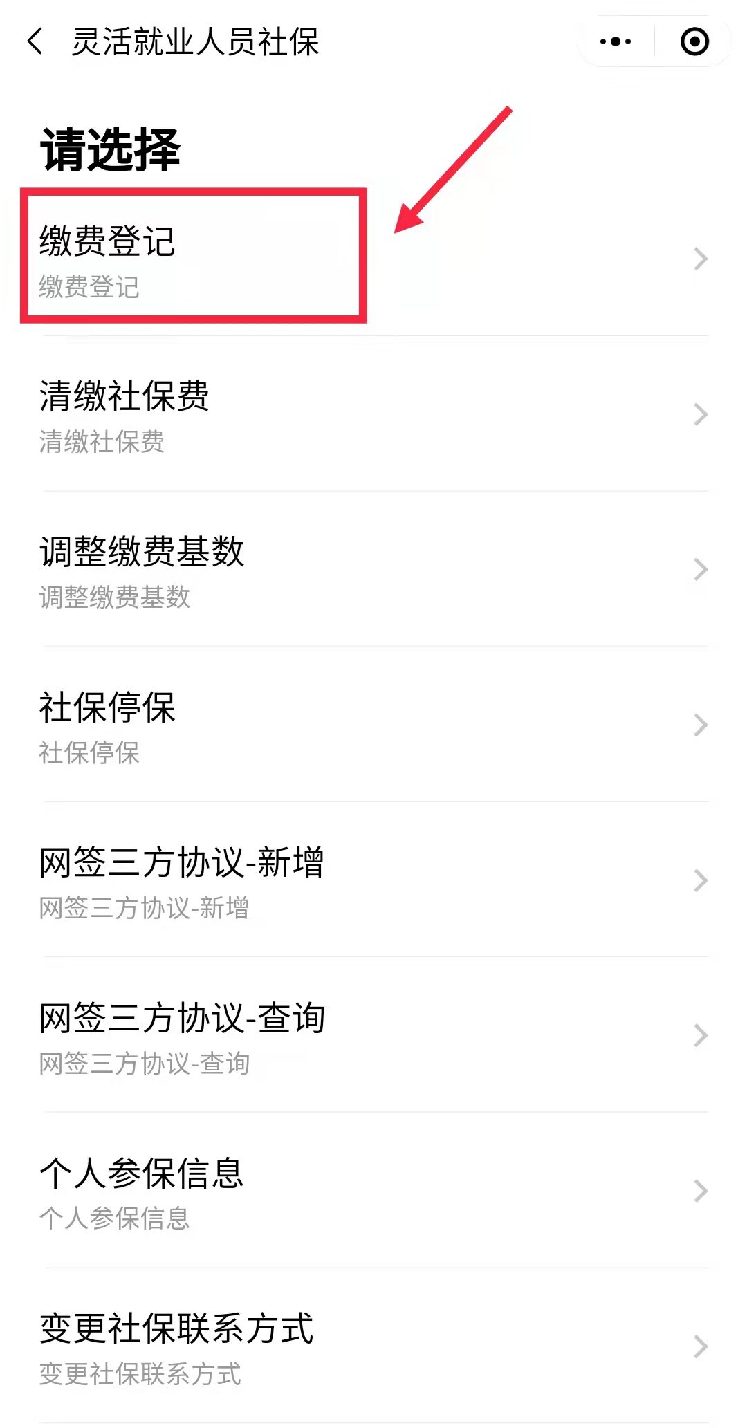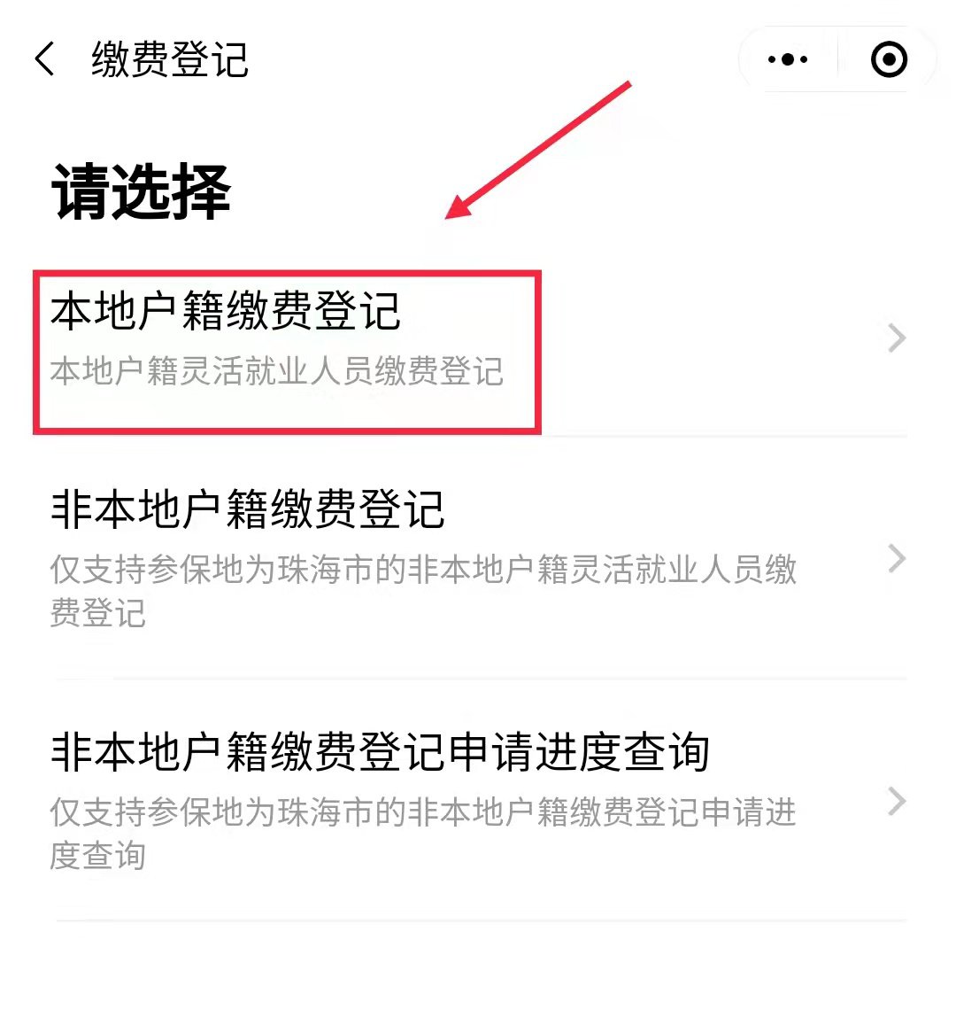 第三步:在【缴费登记】中选择【本地户籍缴费登记】,如下图所示: