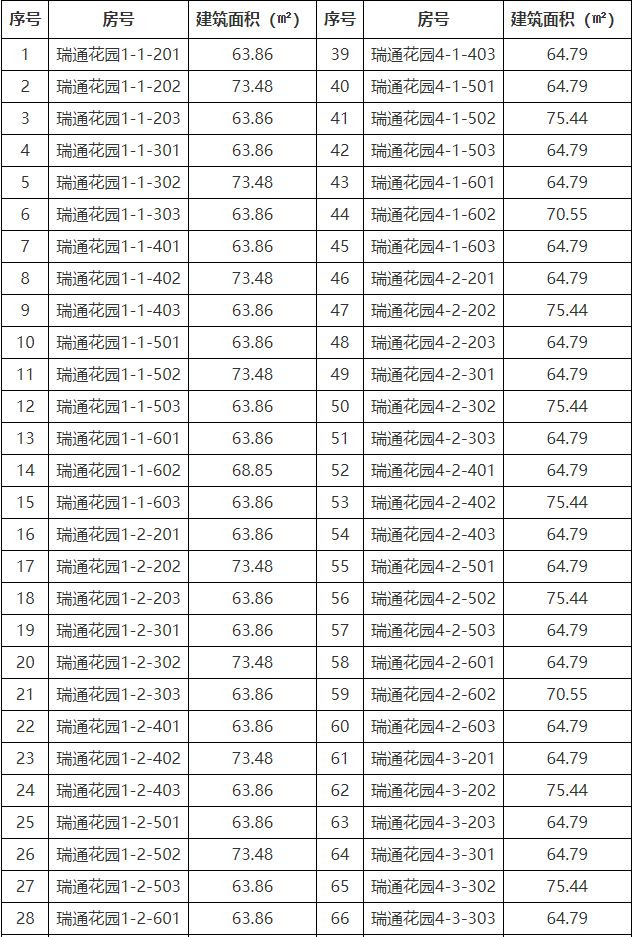 1.瑞通花园75套(新建),位置:肥城市老城街道办事处济兖路21号(房源情况详见附表1)。