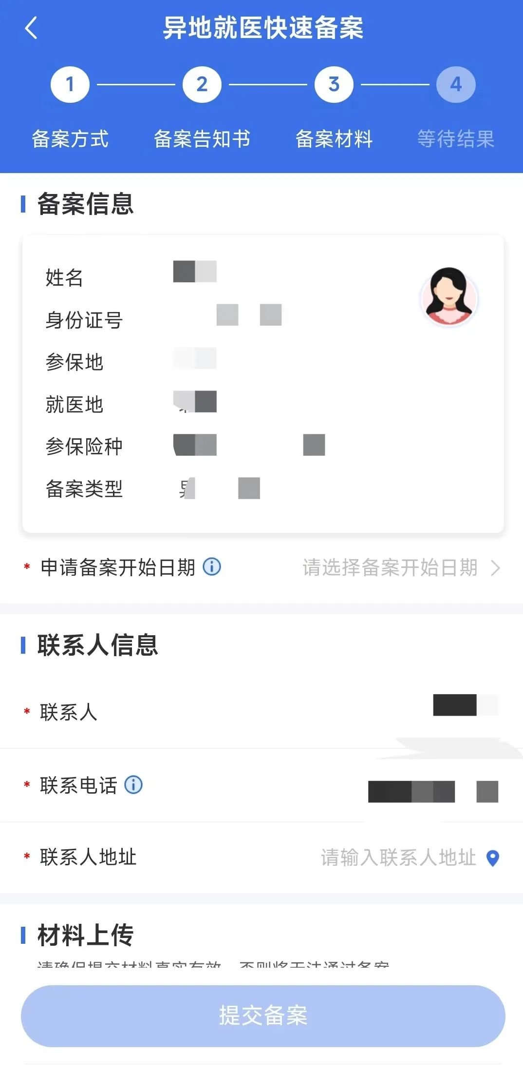 填写备案信息、联系人信息并上传相关材料。确认无误后,点击【提交备案】按钮。