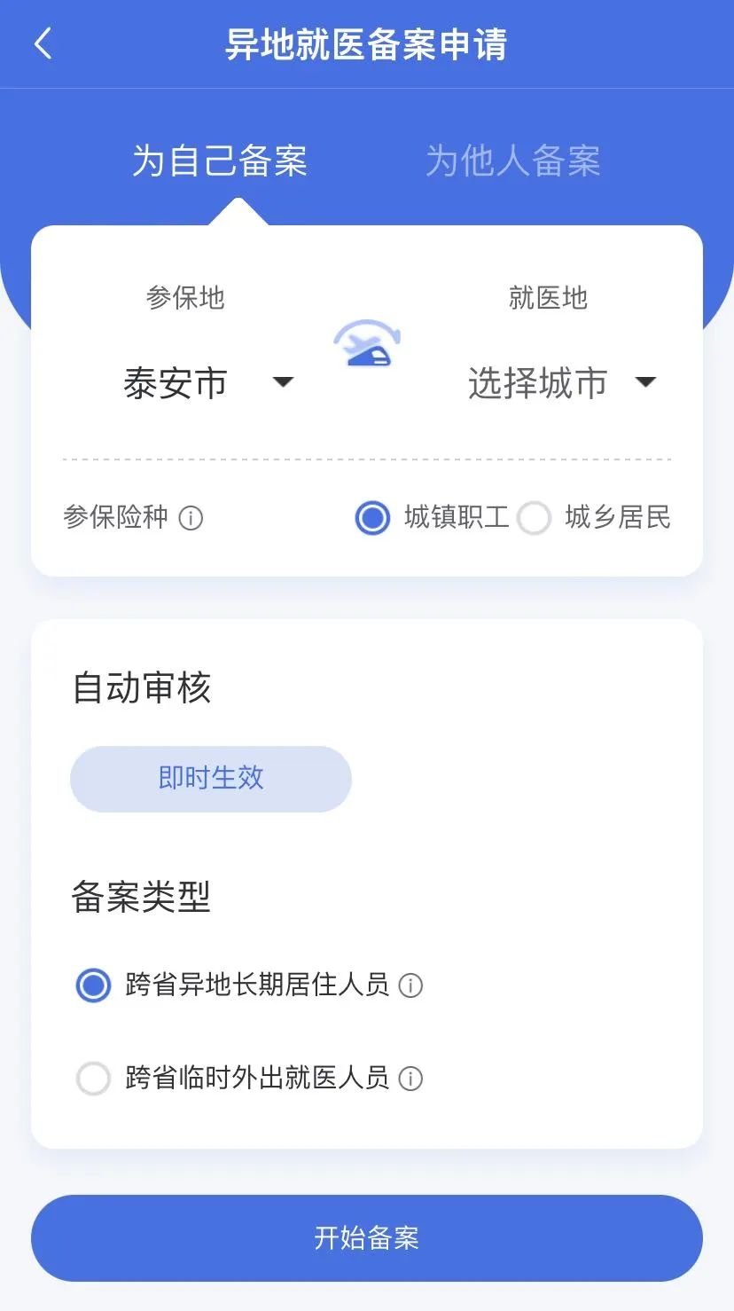临时外出就医人员就医:省内跨市(到我省其他地市)的不再需要备案,持本人身份证或社会保障卡可直接在异地就医的医疗机构联网结算;跨省临时就医需要备案,可通过我市定点医院转院、泰安市医疗保障局官方网站、国家医保服务平台App、“泰安医保”微信(支付宝)小程序、医保服务电话等渠道办理备案。