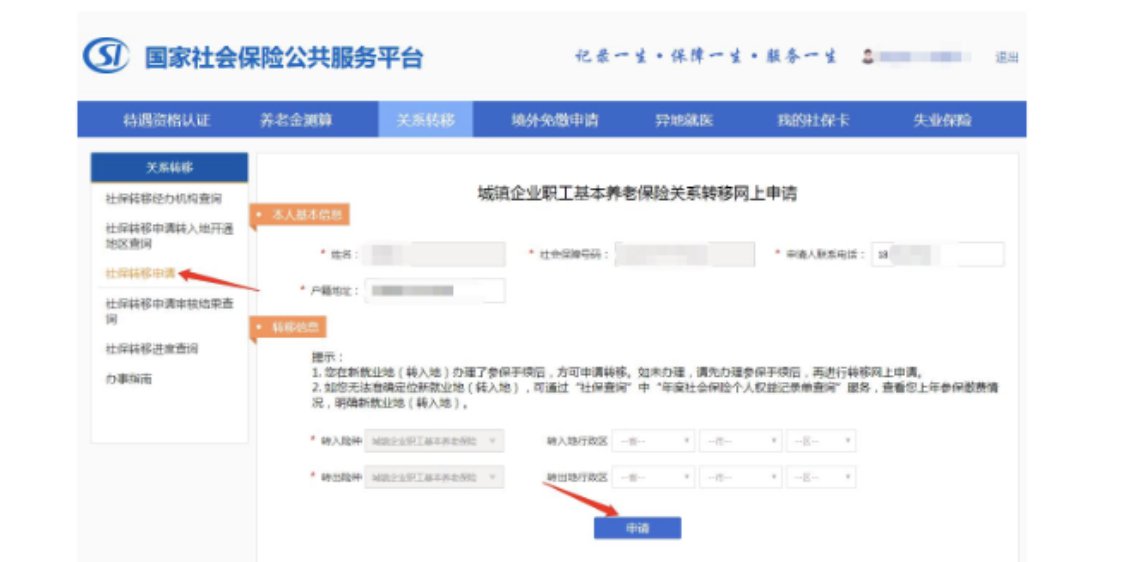 4、办申请,凡已开通服务地区,您不用再开具《参保缴费凭证》,选择“社保转移申请”,办理网上申请。