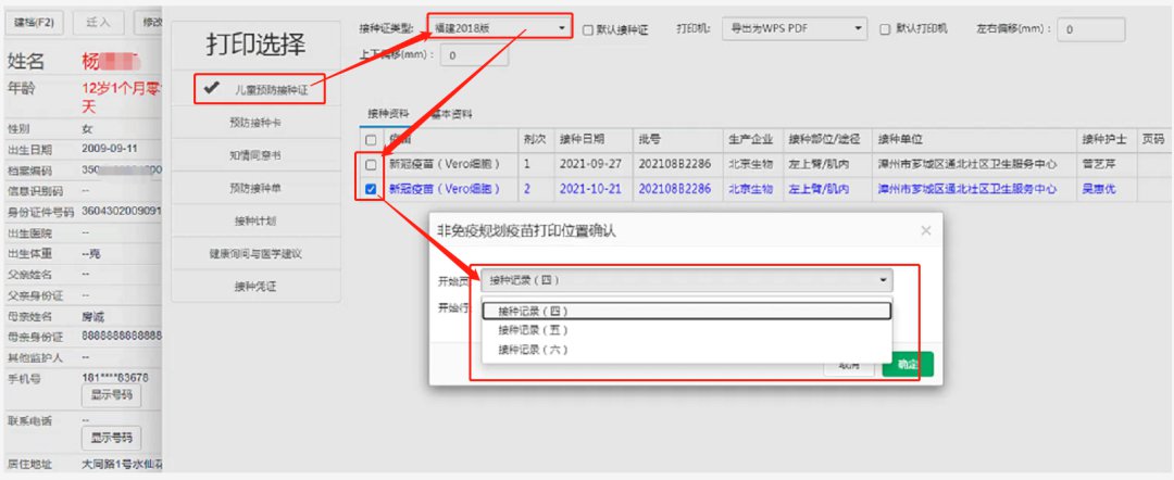 在登记台和接种台均可以进行新冠接种记录打印,方法参照非免疫规划疫苗打印方式,可选第四、五、六页的第几行