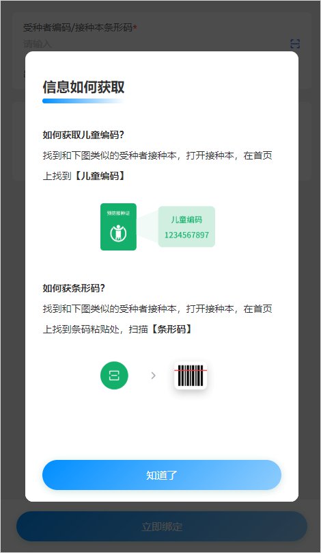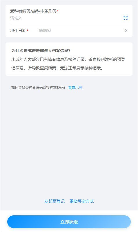 1.预登记方式:接种本儿童编码或条形码
