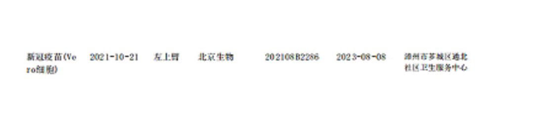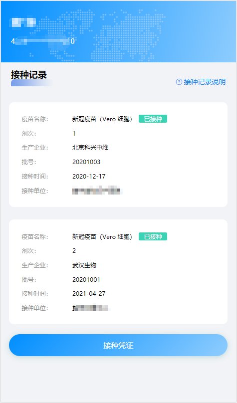 (1)接种记录:可查看该受种者的接种记录,含疫苗名称、剂次、生产企业、批号、接种时间、接种单位