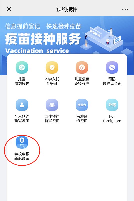关注微信公众号【福建卫生健康公众服务平台】,点击【公众服务】——【预防接种】——【学校申报新冠疫苗】