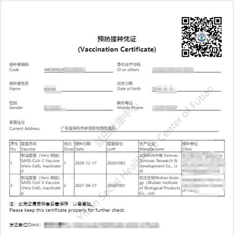 (2)接种凭证:点击接种记录底部“接种凭证”,可查看PDF中英文双语版接种凭证