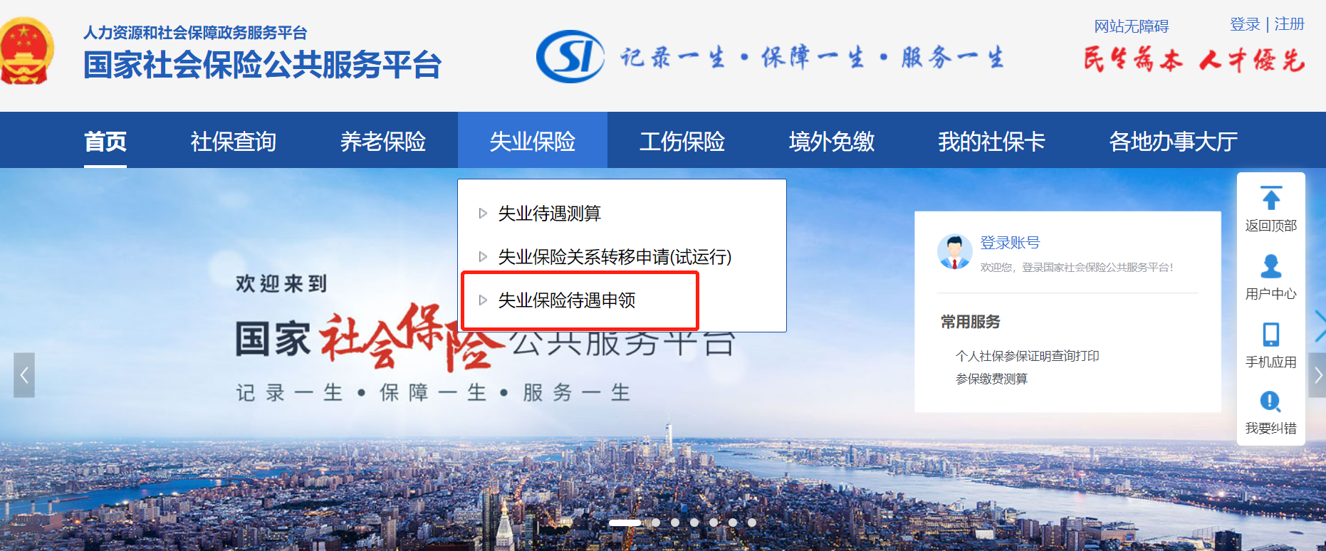 1)进入国家社会保险公共服务平台,选择“失业保险待遇申领”