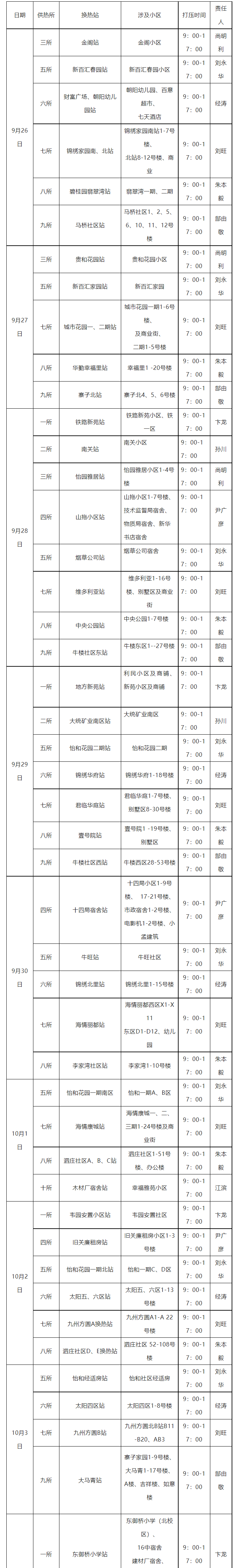 请各位热用户及时关注打压时间安排计划,注水打压期间,请家中务必留人,以防打压过程中出现漏水浸泡等问题。如遇特殊情况时间变动,以小区内张贴注水打压通知为准,请大家留意!