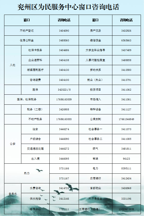 兖州区为民服务中心自9月19日(星期一)起全面恢复线下窗口服务,现公告如下: