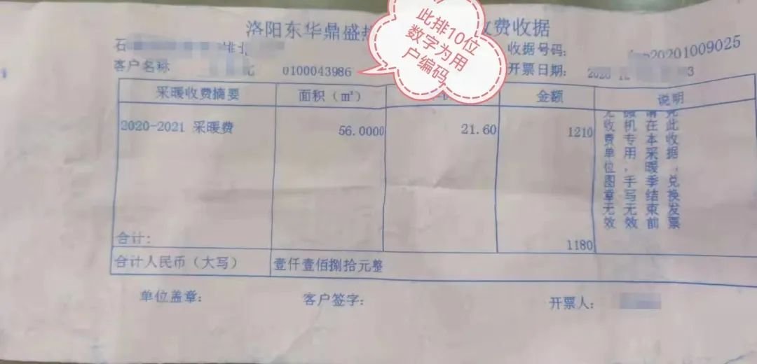往年缴费机打收据上面会显示10位用户号,只要有此用户号均可按以上步骤操作进行热费缴纳。