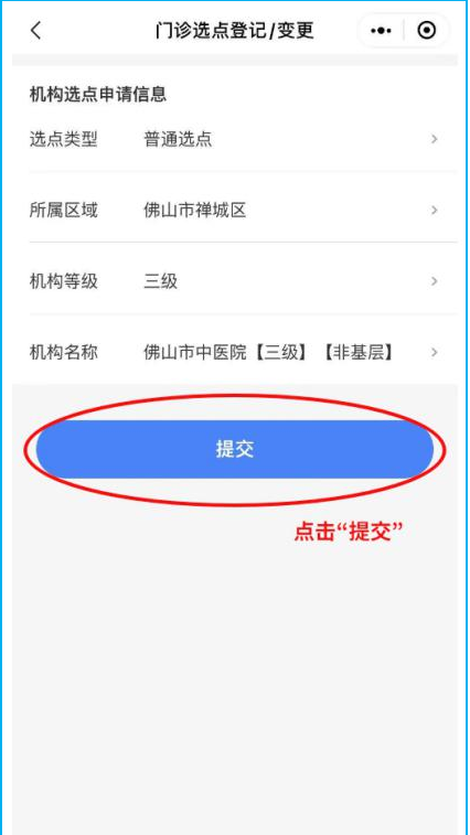按指示登陆“粤医保”后,点击“门诊选点登记”,按提示操作。依次通过“选点类型”“所属区域”“机构等级”“机构名称”筛选医疗卫生机构。点击“提交”,完成选点。