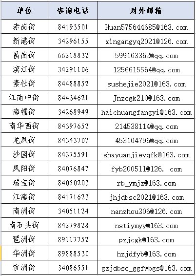 辖区各街道办咨询电话:
