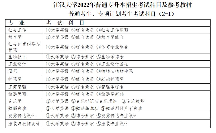 江汉大学2022年专升本考三门(一门统考英语、两门专业科目),所以普通考生和专项计划考生收费标准为130元/生;退役大学生士兵收费标准为50元/生。