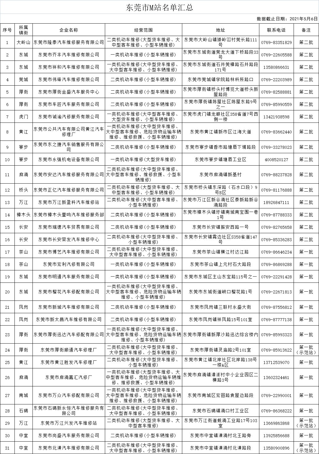 截止至2021年5月6日,东莞市交通运输局公布的东莞市M站共有31家,一起来了解一下具体的企业名称和经营范围吧!