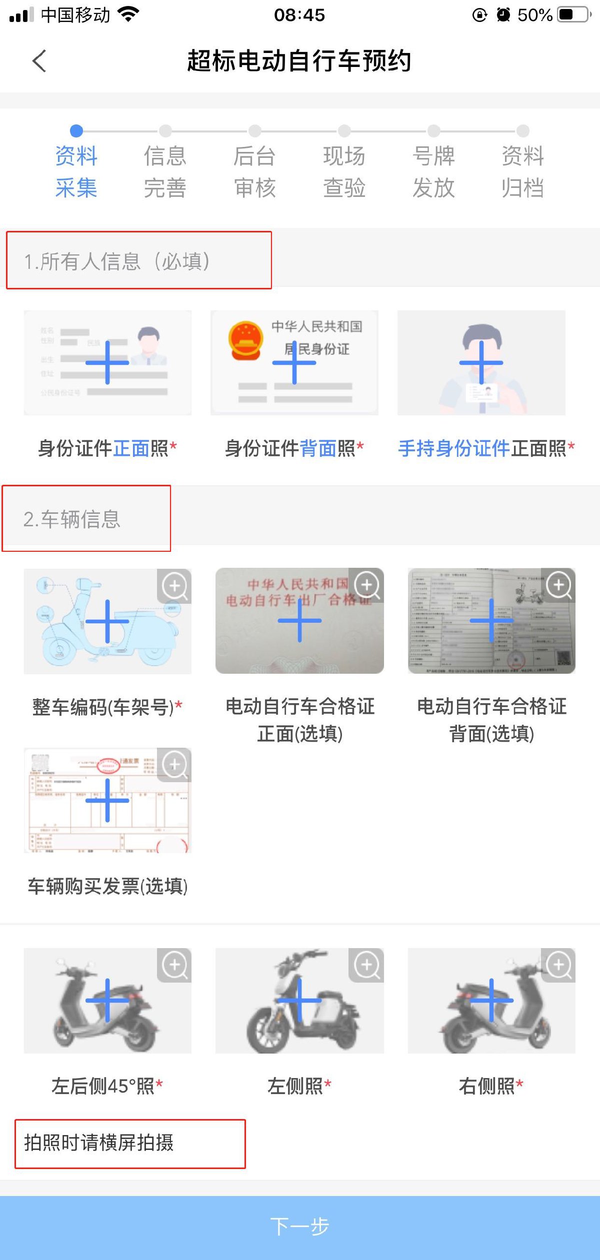 在斑马信用APP的“电动自行车预约”页面,需提交身份证明、车辆信息(包括整车编码、CCC认证、电动自行车合格证),经审核通过后,即完成电动自行车登记预约。