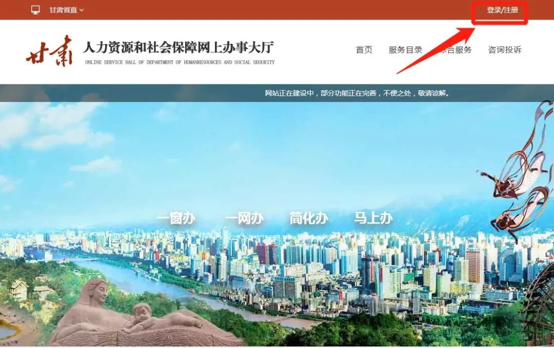 打开浏览器,在地址栏中输入www.rst.gansu.gov.cn:8080/进入甘肃人力资源和社会保障网上办事大厅首页,点击右上角【注册】并填写相关注册信息。