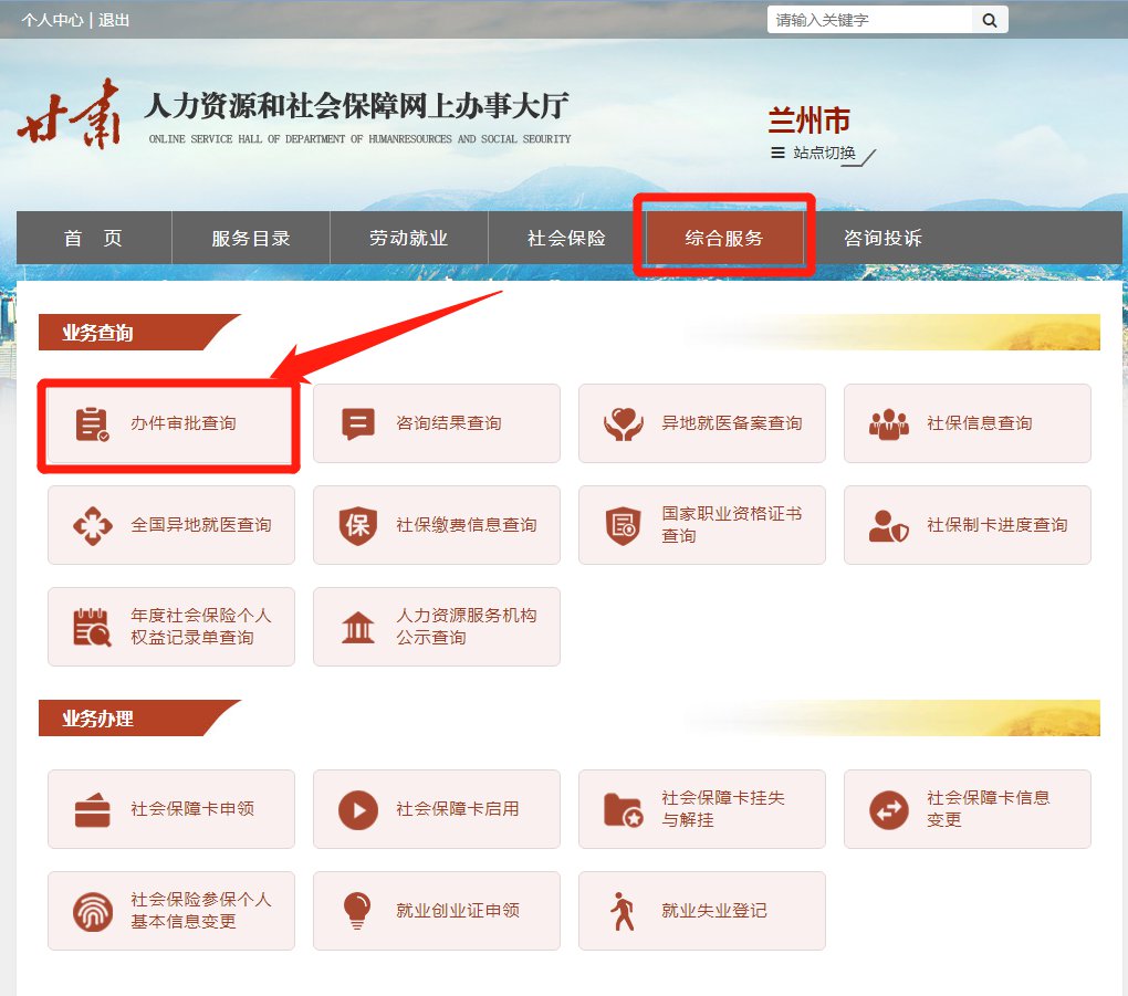 在联系地址一栏填写本人现详细住址,在备注信息栏务必准确填写原工作单位全称及本人社会保障卡号,信息填写确认无误后点击【保存提交】,申报事项将传入后台经办系统由经办机构工作人员进行审核。本人进入甘肃人力资源和社会保障网上办事大厅首页,点击右上角“综合服务”进入,点击“办件审批查询”,再点击“查看办件”,即可查看办理结果。